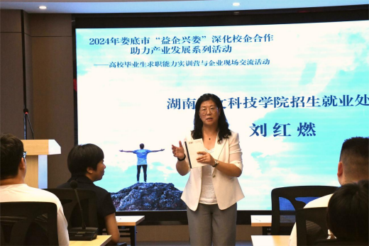 為進(jìn)一步深化校企合作,助力產(chǎn)業(yè)發(fā)展,持續(xù)推動(dòng)“益企興婁 ”活動(dòng),2024年7月,婁底市人力資源和社會(huì)保障局與湖南人文科 技學(xué)院聯(lián)合開(kāi)辦了“婁底市首期求職能力實(shí)訓(xùn)營(yíng)”。為切實(shí)提高實(shí)訓(xùn)營(yíng)學(xué)員對(duì)行業(yè)企業(yè)的認(rèn)知,讓學(xué)員親身感受婁底企業(yè)的發(fā)展?fàn)?/span>況,提高學(xué)員的就業(yè)實(shí)踐能力,2024年8月7 日,由婁底市就業(yè)服務(wù)中心、湖南人文科技學(xué)院招生就業(yè)處、婁底市企業(yè)聯(lián)合會(huì)、婁底市企業(yè)家協(xié)會(huì)聯(lián)合主辦,婁底市節(jié)能環(huán)保產(chǎn)業(yè)促進(jìn)中心等企業(yè)承辦,在婁星產(chǎn)業(yè)開(kāi)發(fā)區(qū)產(chǎn)學(xué)研中心舉辦“2024年婁底市高校畢業(yè) 生求職能力實(shí)訓(xùn)營(yíng)與企業(yè)現(xiàn)場(chǎng)交流活動(dòng)”。湖南人文科技學(xué)院招 生就業(yè)處處長(zhǎng)劉紅燃,婁底市就業(yè)服務(wù)中心城鄉(xiāng)就業(yè)服務(wù)部部長(zhǎng)聶瑞成帶隊(duì)參加。