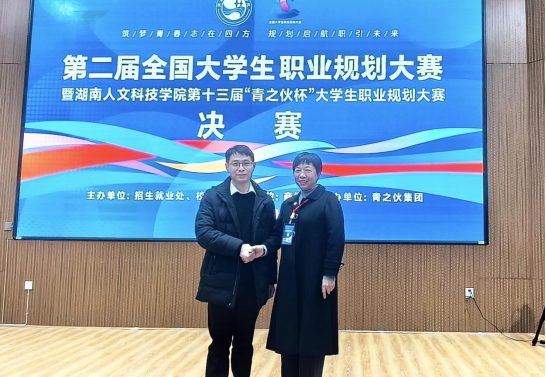 為貫徹落實黨中央、國務院關于高校畢業(yè)生就業(yè)工作的決策部署,加強高校就業(yè)指導,增強大學生生涯規(guī)劃意識,促進高校畢業(yè)生高質量充分就業(yè)。12月10日,第二屆全國大學生職業(yè)規(guī)劃大賽暨湖南人文科技學院第十三屆“青之伙杯”職要有你——大學生職業(yè)規(guī)劃大賽在湖南人文科技學院匠成樓報告廳舉行。校黨委委員、副校長譚峰亮、婁底市人力資源和社會保障局就業(yè)服務中心創(chuàng)業(yè)服務部部長康杜娟、婁底市企業(yè)聯(lián)合會副秘書長兼校企合作宣傳部部長劉娟、創(chuàng)新創(chuàng)業(yè)指導中心黨支部書記曾真飚、招生就業(yè)處處長劉紅燃出席并頒獎,參加活動的還有利通磁電、市節(jié)能環(huán)保產(chǎn)業(yè)促進中心、湘輝智匯人力資源和洪申科技等企業(yè)負責人。