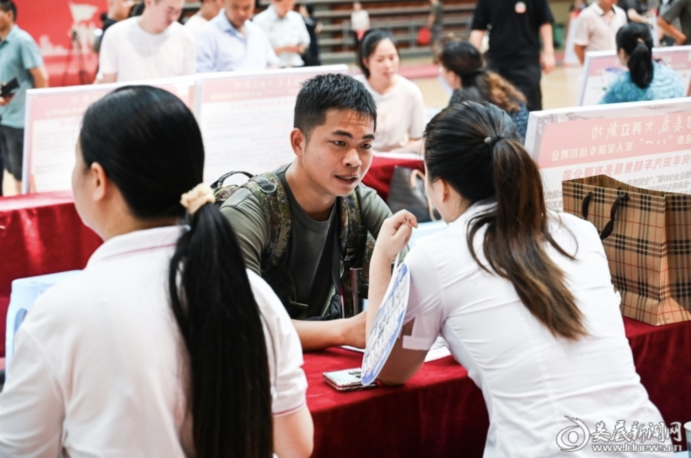 (8月2日,婁底市“八一”軍人軍屬專場招聘會在婁底市體育中心體育館舉行)