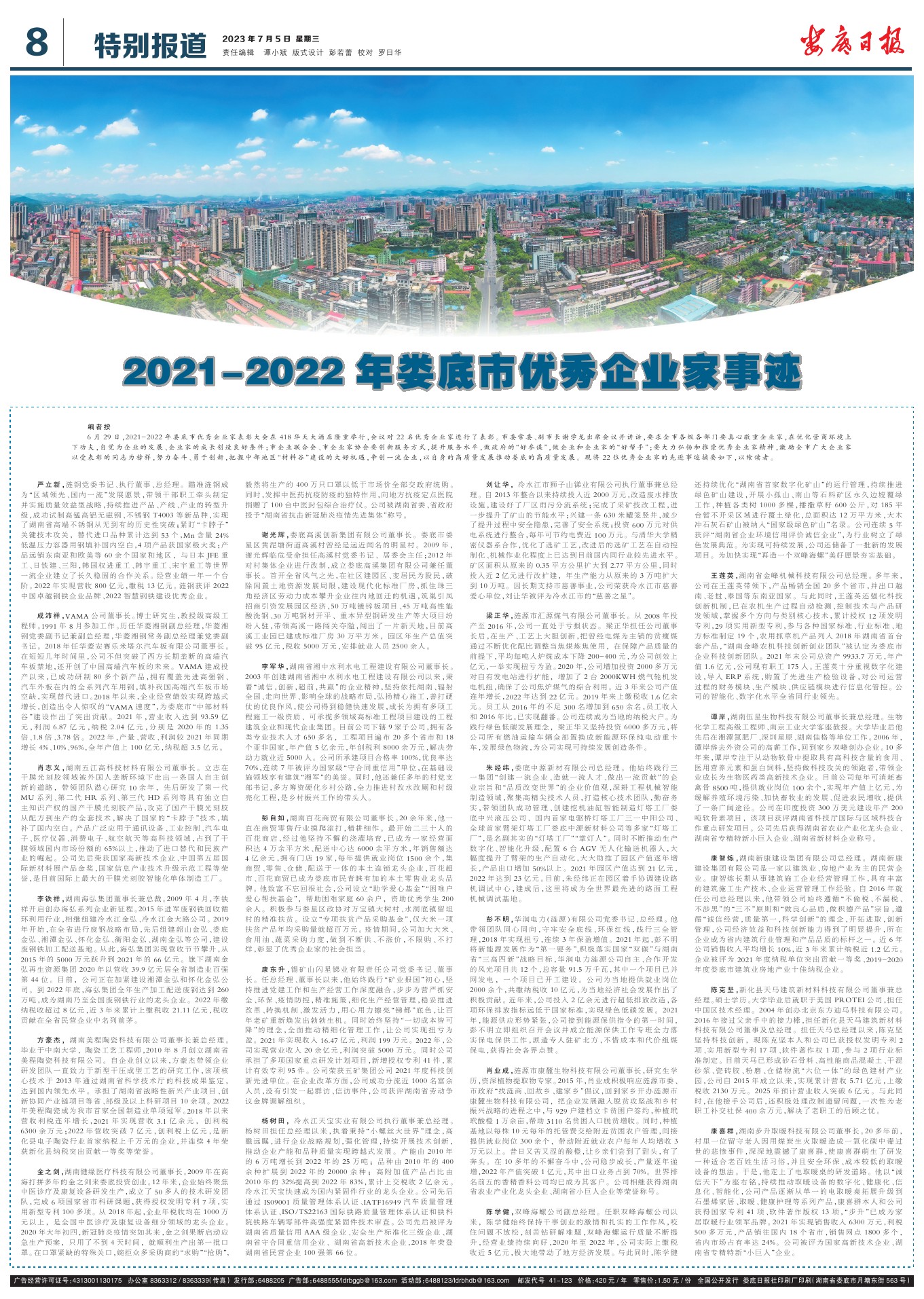 2021-2022年婁底市優(yōu)秀企業(yè)家事跡